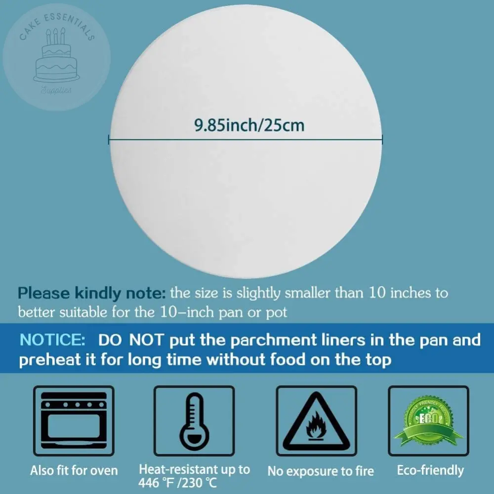 100 Pcs 10 Inch Round Parchment Paper Baking Sheets: Non-Stick Liners